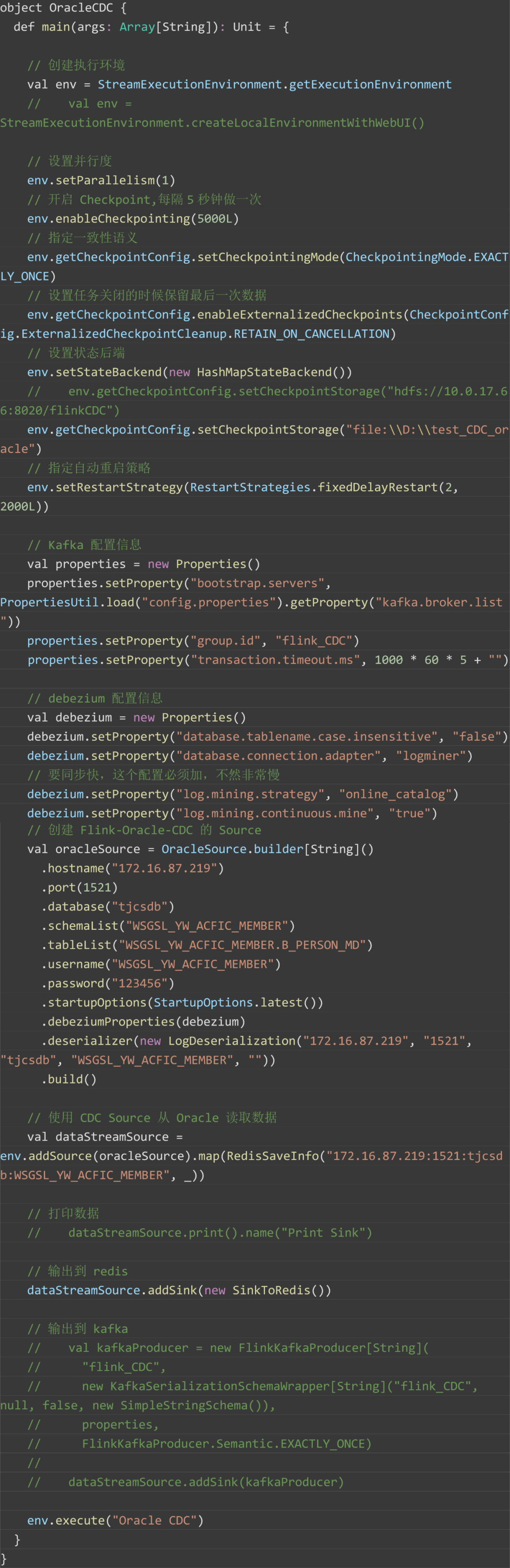 DataStream方式监听 Oracle 数据库实现: