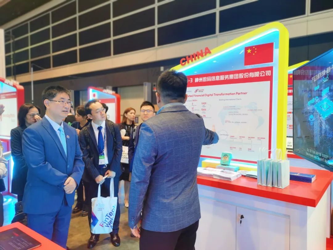 神州信息作为中国领先的金融科技企业受邀参会。开幕当天,香港特首李家超、深圳市地方金融监督管理局局长何杰等相关领导及众多金融机构嘉宾亲临神州信息展台参观。